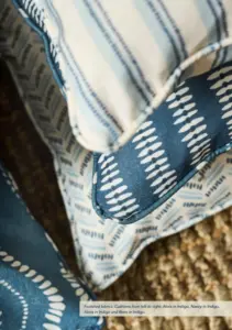 Por ejemplo, puedes combinar una cortina con un estampado geométrico discreto con una butaca tapizada en un patrón de flores pequeñas en tonos similares. O utilizar varios tejidos de la colección para crear cojines y detalles decorativos que aporten ritmo y dinamismo sin romper la armonía del conjunto.
