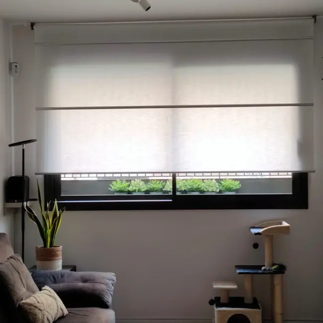 Cada espacio es distinto y requiere dedicarle su tiempo hasta encontrar lo que mejor se adapte y nos guste. Podemos ir con la idea de colocar un paqueto y después de estudiarlo, podemos acabar con un panel japonés, una cortina convencional, una enrollable, una veneciana indeformable o de madera, o unas verticales de lamas ancho 250… ¡O igual hasta las motorizamos! Con los motores de batería sin instalación, es fácil plantearse motorizarlas, añadiendo un plus de confort.