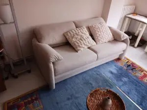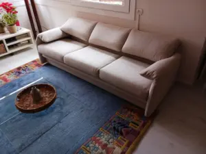 ¡Los años y las modas pasan para todo! En este caso, queríamos darle una segunda vida a dos sofás que ya tenían unos años. Pasaron de un tono marrón oscuro a un color crudo mucho más actual. El cambio fue todo un acierto: los sillones se ven renovados y con un diseño que sigue teniendo mucha personalidad.